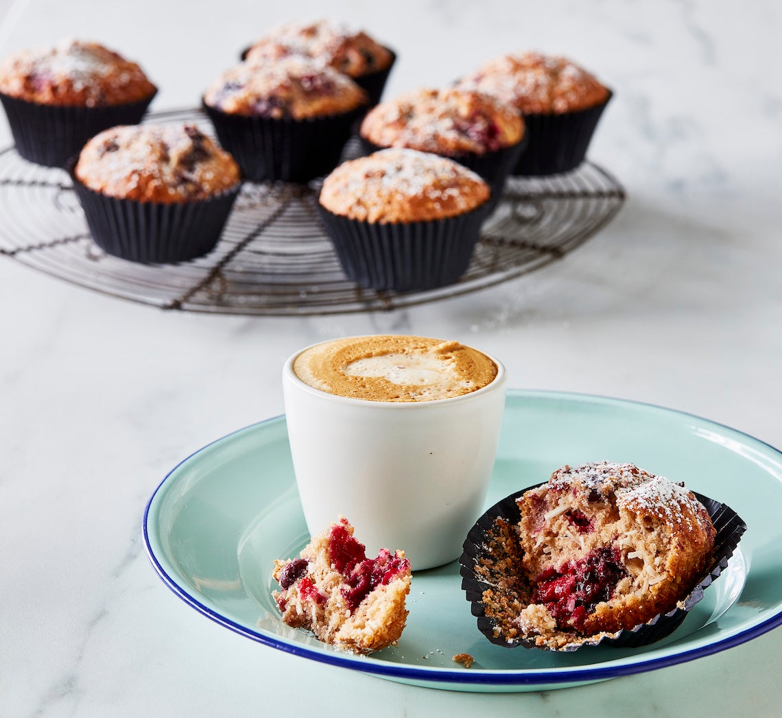 - Spoon the mixture into the paper cases, dividing evenly. Bake in preheated oven for 25-28 minutes or until the muffins are golden and cooked when tested with a skewer. Cool for 3 minutes in the tin, then turn out onto a wire rack. Serve warm or at room temperature.