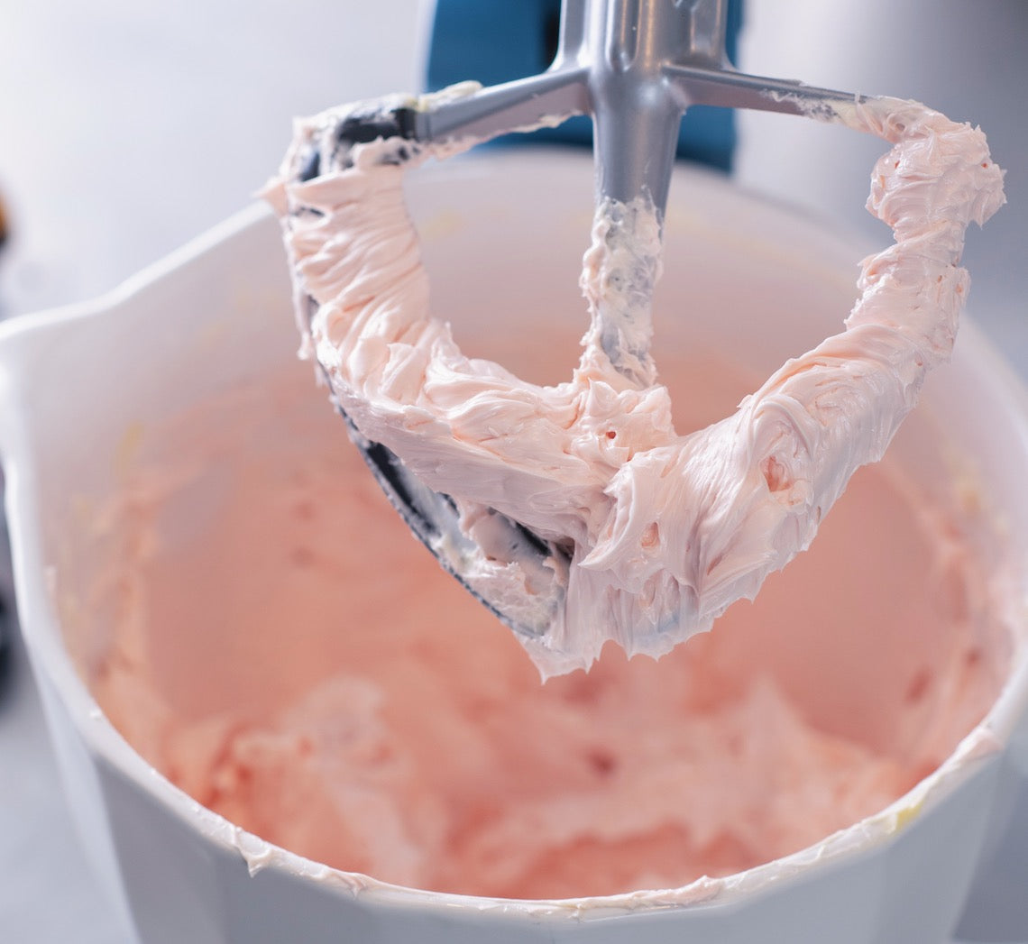 - Reduce speed to medium-low and beat for 3-4 minutes and the mixture is smooth and creamy. Beat in the salt and vanilla. Tint with gel colour to desired colour if using. Use imediately.