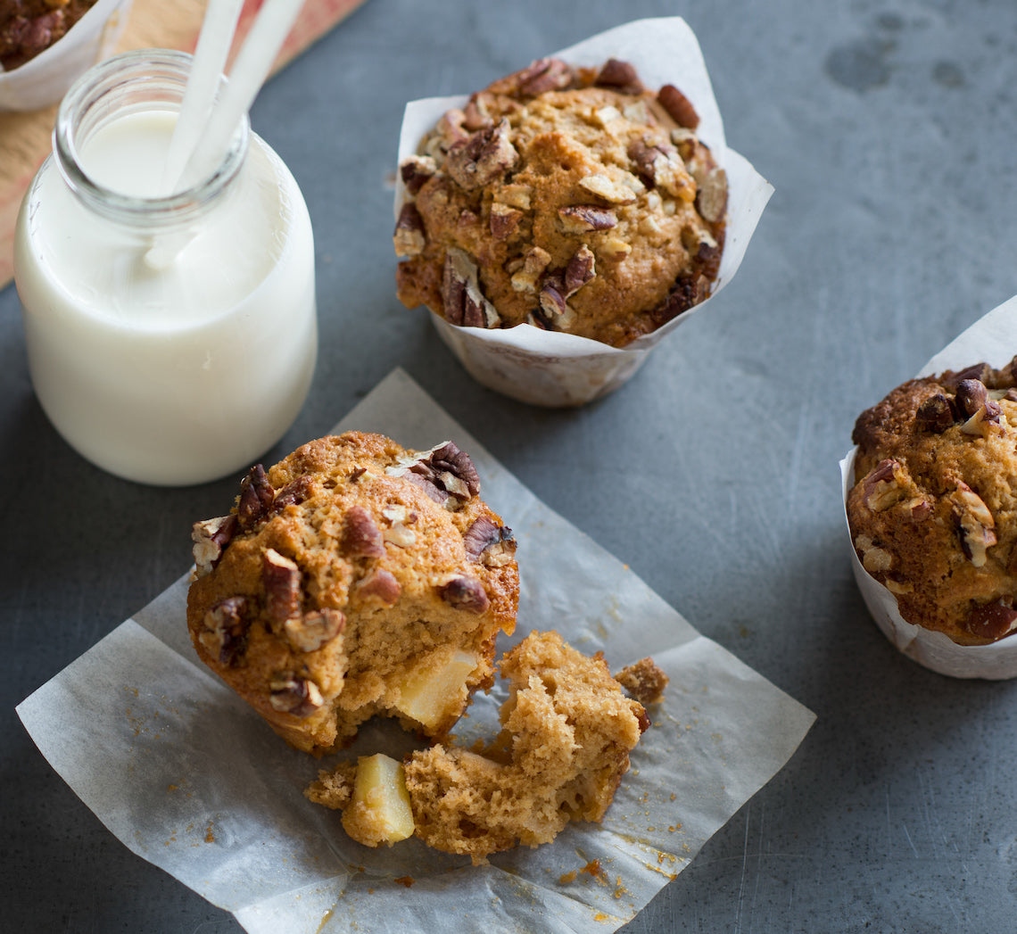 I always say that muffins should have substance – they shouldn't have "cakey" character. After all, they're muffins, not cake! Dense with apple, sweet with spice and topped with pecans these muffins are one of my favourites.