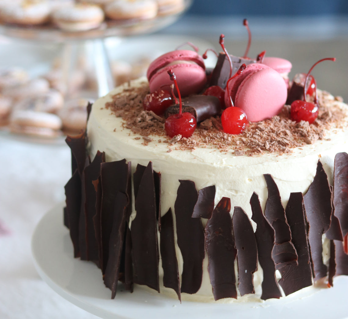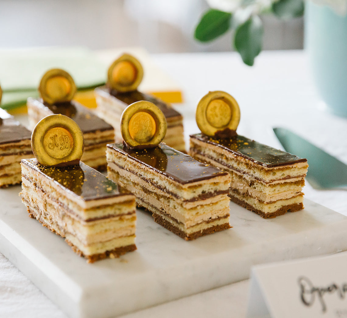Created by Make Me a Baker student, Karthika Biju for her graduation, this stunning cake brings together numerous techniques learnt throughout the 6-month course. A real challenge, this dessert is an exquisite combination of chocolate and coffee-infused layers of almond sponge, ganache, chocolate croustillant, hazelnut praline and Swiss meringue buttercream. Karthika finished each portion of cake with gold dust and leaf and also personalised them with a chocolate disc monogramed with her initials. Not for the faint-hearted baker, this recipe is nothing short of a challenge but the results will definitely reflect the effort.