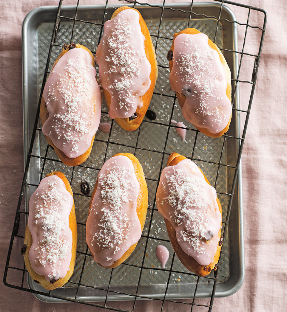 Just milk bread studded with sultanas, topped with pink icing and finished with coconut – it's the simplicity that gives the finger bun its appeal!