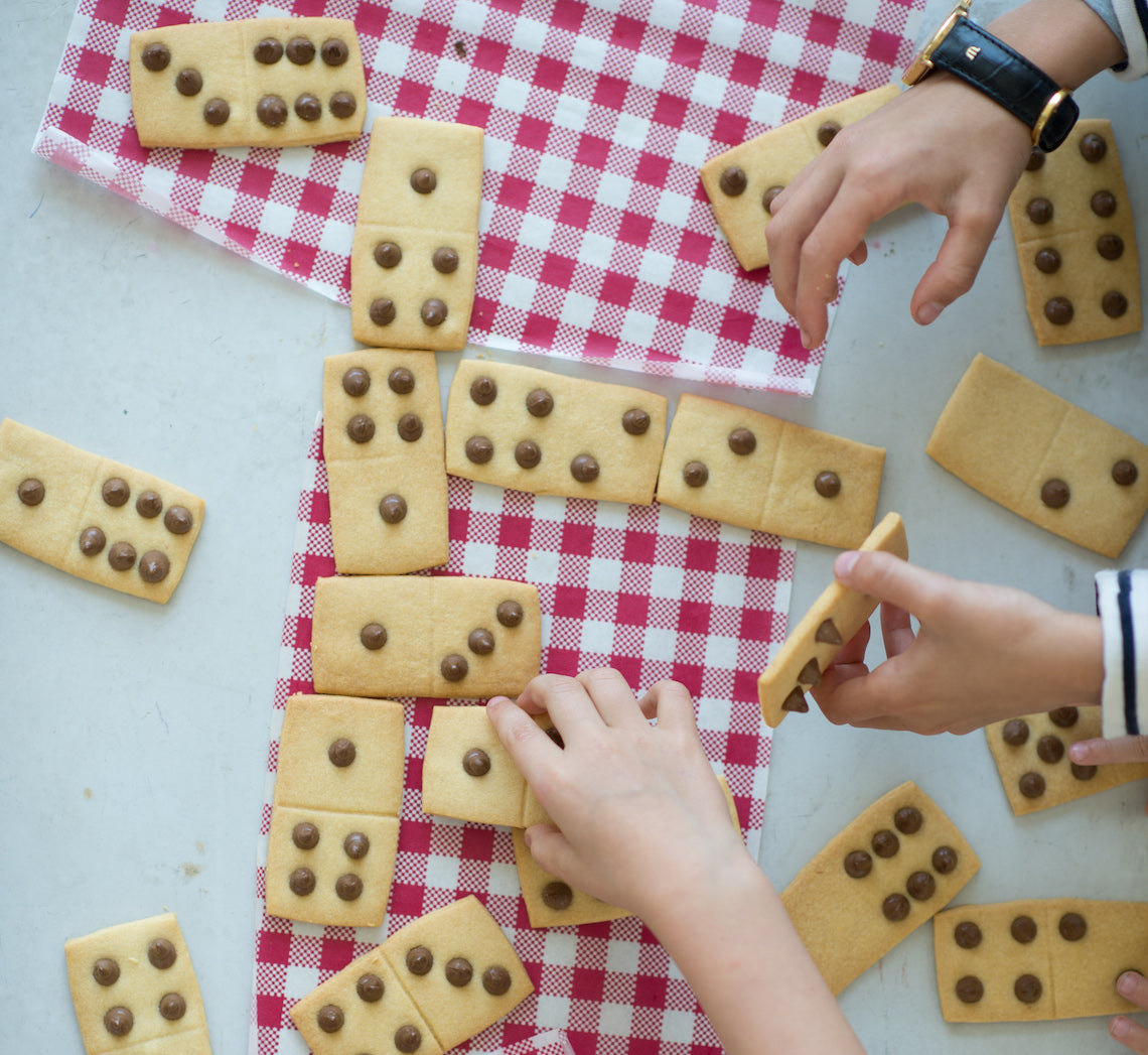 Sipping on malted milk milkshakes and playing dominos is a vivid childhood memory. These biscuits combine the two and kids will love not only creating them, but also playing with them as they snack — all you need is a glass of milk!