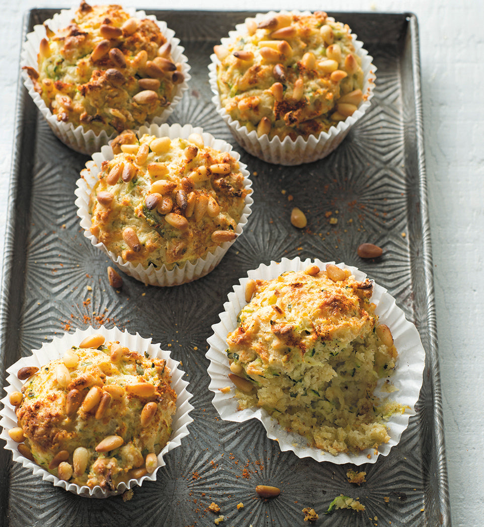 - Spoon the mixture into the prepared muffin holes, dividing evenly. Scatter over the pine nuts and sprinkle with a little cayenne pepper. Bake in the preheated oven for 25–30 minutes or until the muffins are golden and a skewer inserted in the centre comes out clean. Leave to cool in the tin for 5 minutes before transferring to a wire rack. Serve warm or at room temperature.