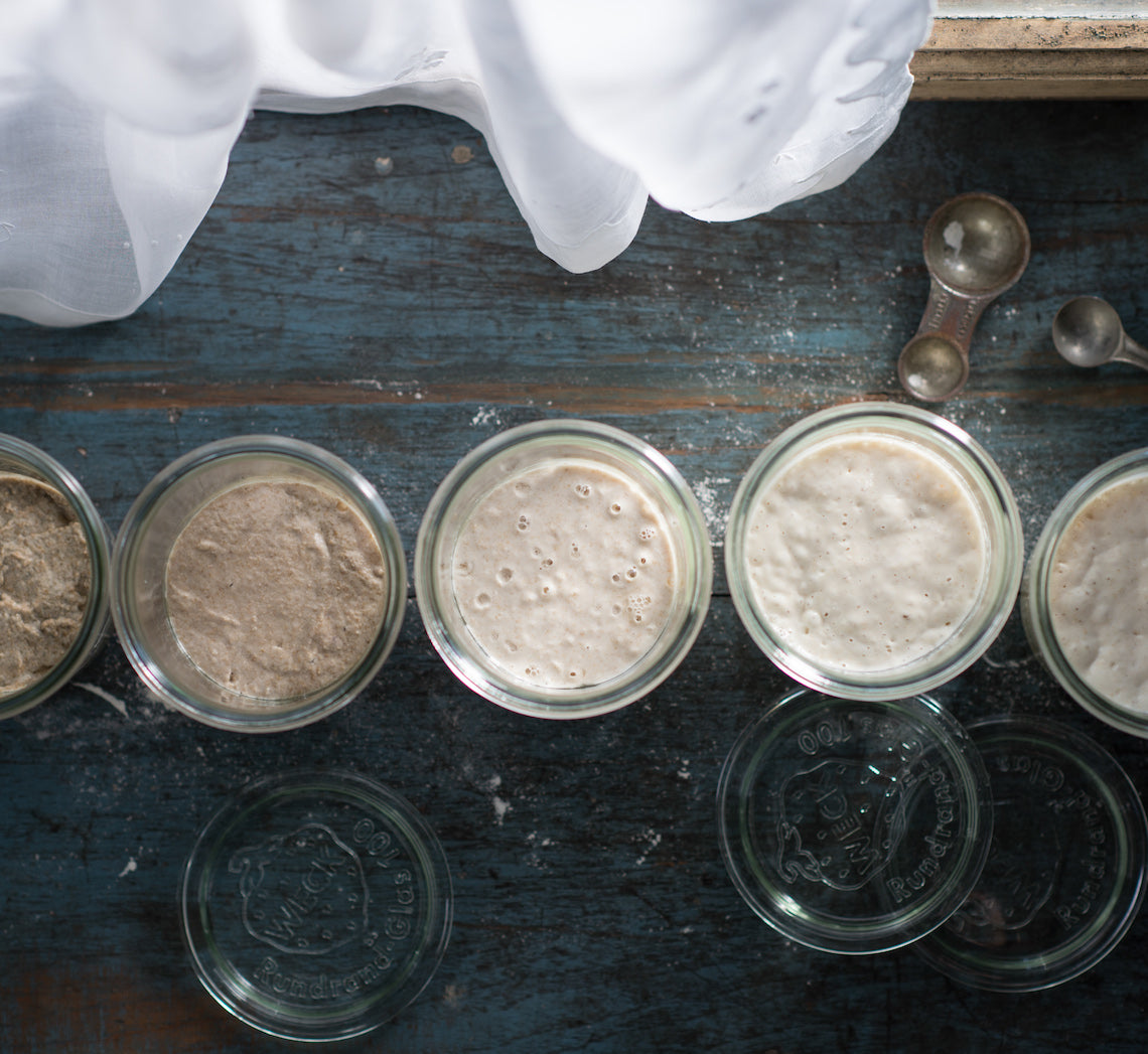 #4. A sourdough starter can be mixed and kept in a non-reactive container such as a glass jar. Look for one that has straight sides and a reasonable sized mouth to make mixing easy. This starter recipe will need a jar that has a capacity of at least 1 litre (4 cups) and, before making your starter, ensure that it is very clean and dry. It’s a good idea to note the weight of your jar so that it is easy to calculate how much sourdough starter you need to remove and discard every time you feed it.